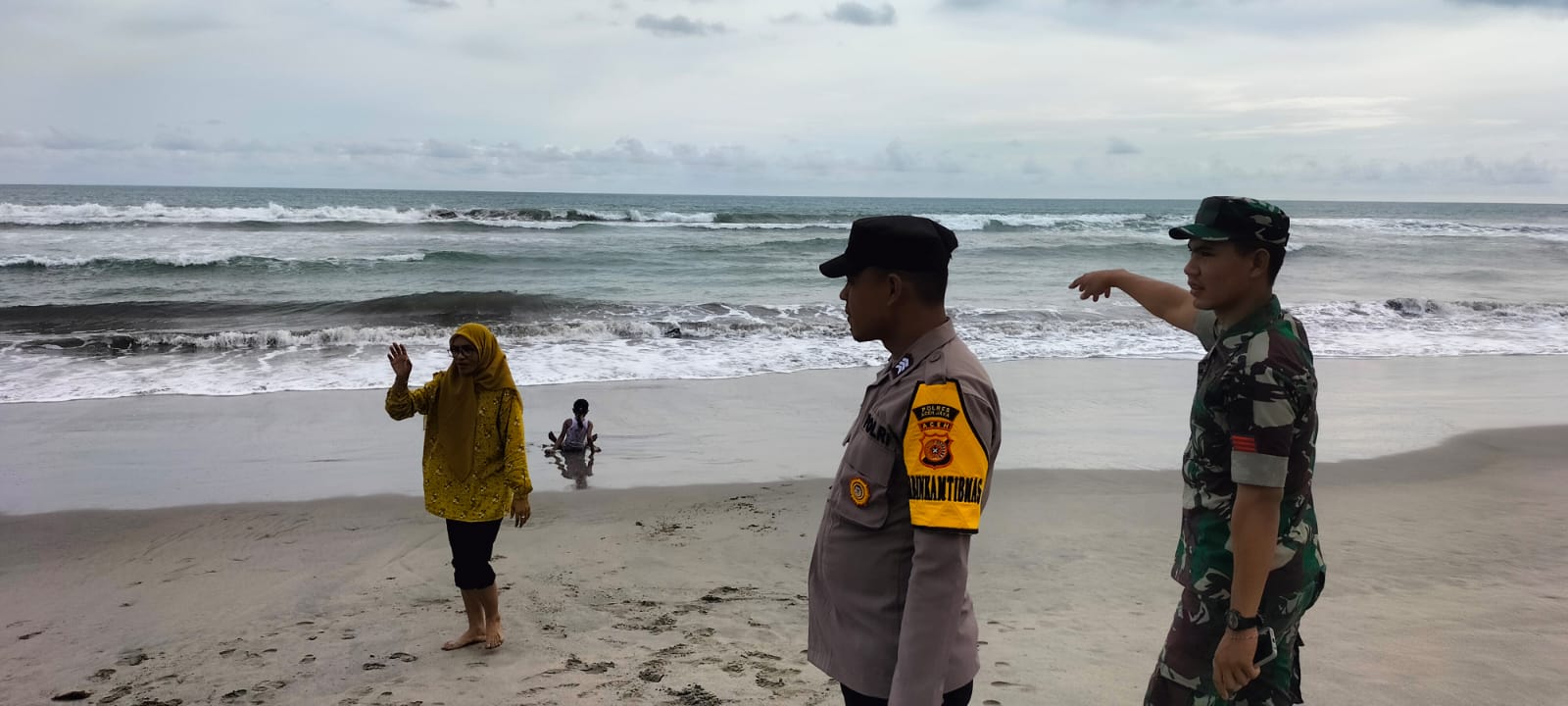 Patroli Pantai, TNI-POLRI di Aceh Jaya Himbau Pengunjung Tidak Mandi