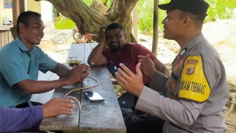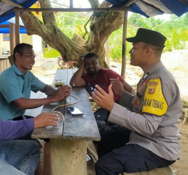Sambil Bercengkrama, Bhabinkamtibmas Sampaikan Pesan Kamtibmas