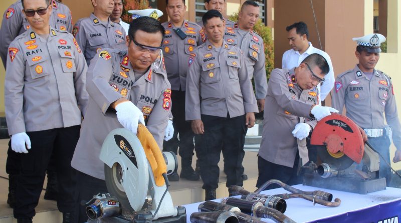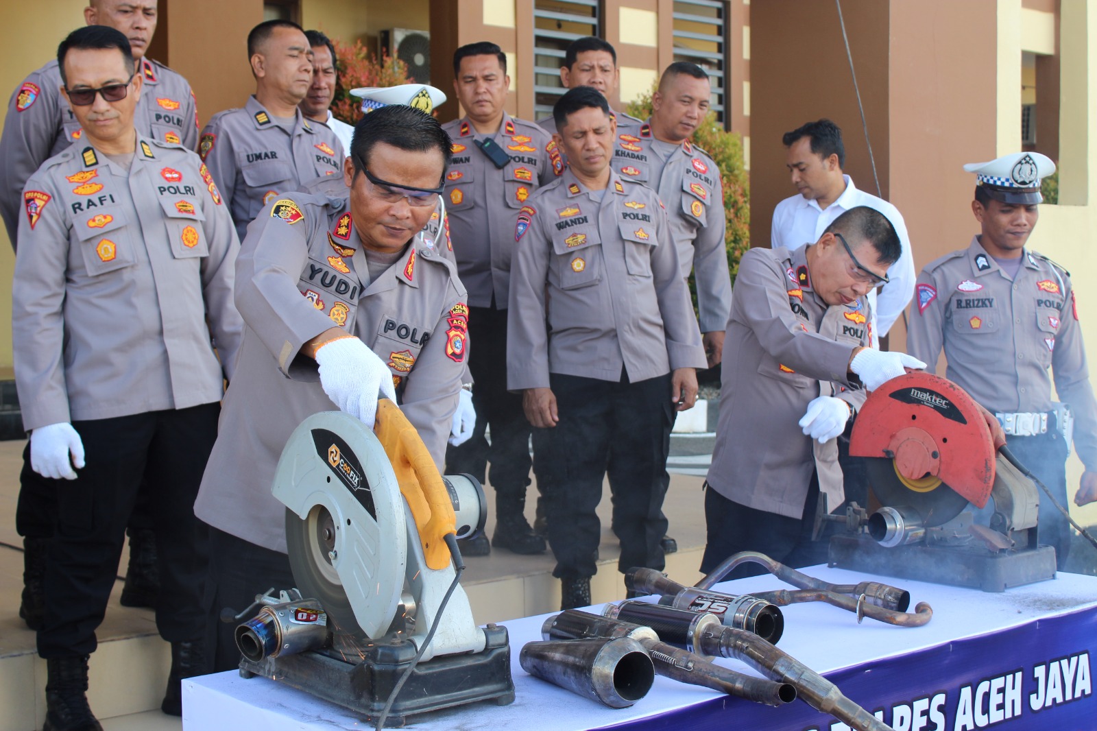 Kapolres Aceh Jaya Musnahkan 38 Knalpot Brong Hasil Razia
