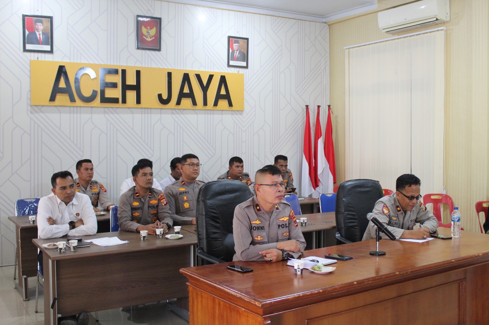 “Wakapolres Aceh Jaya bersama sejumlah PJU Polres mengikuti kegiatan tersebut di Ruang Vicon Mapolres Aceh Jaya,” tutup M. Jonni.