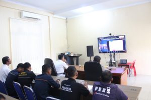 Calang – Kepala Kepolisian Resor (Polres) Aceh Jaya AKBP Yudi Wiyono, S.I.K. bersama Wartawan mengikuti dialog penguatan internal Polri guna pemantapan komunikasi publik menuju Polri yang presisi melalui sarana zoom meeting, di Aula Mapolres setempat.