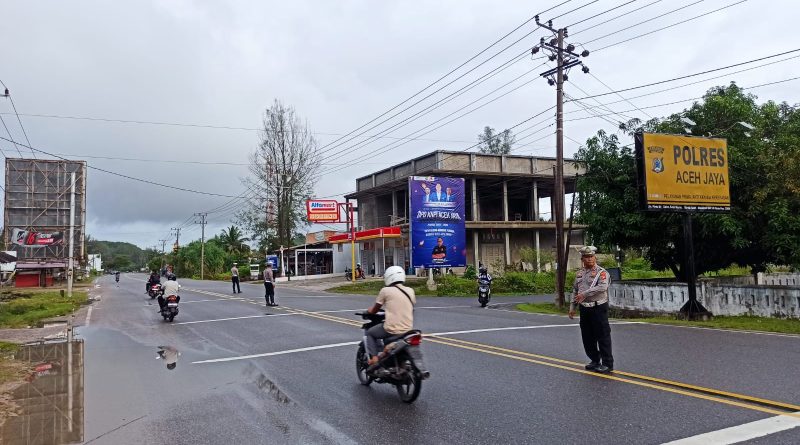 Satlantas Polres Aceh Jaya Gelar Strong Point Pagi di Titik Rawan Kecelakaan dan Kemacetan, Serta Berikan Himbauan Keselamatan