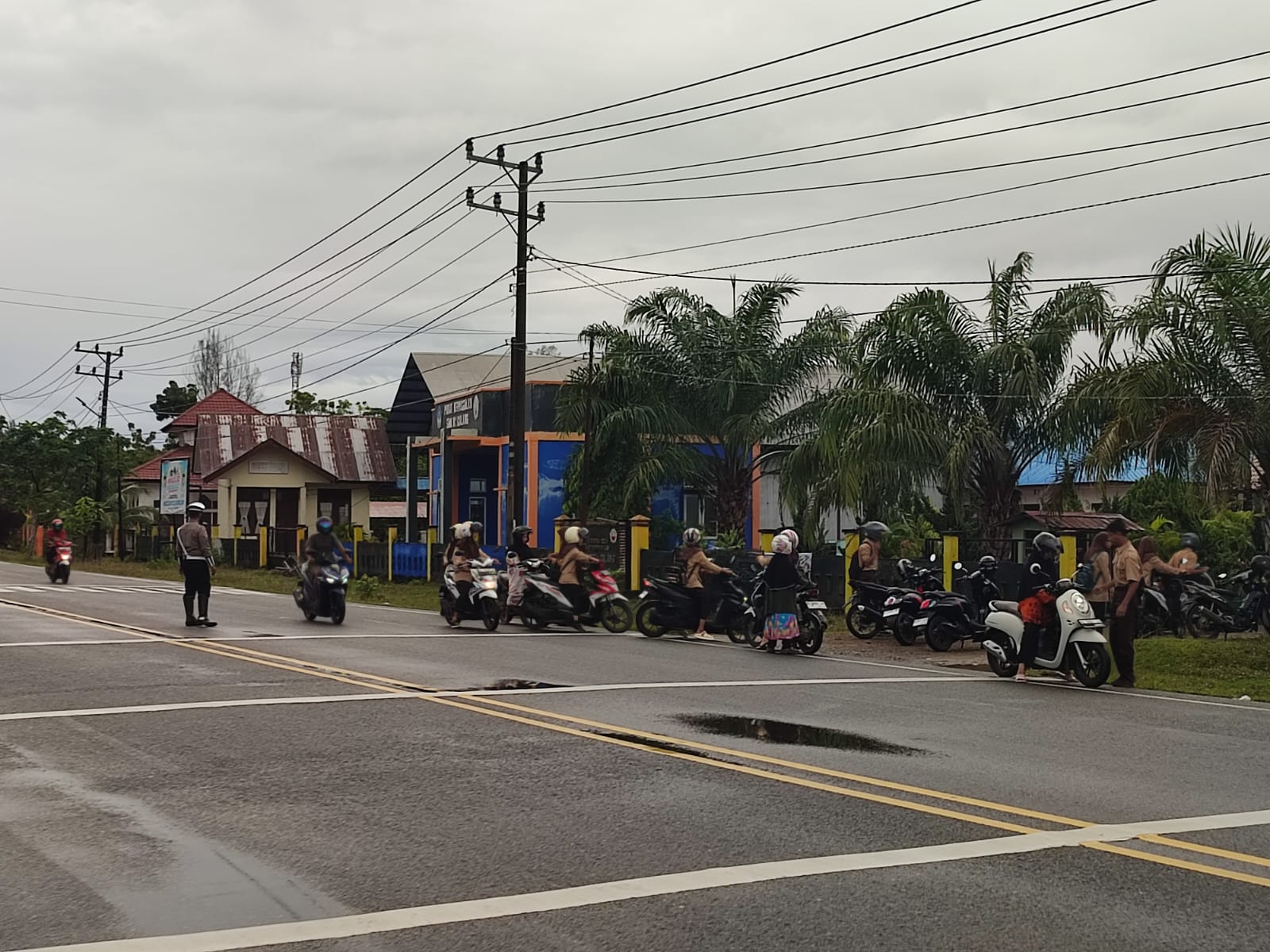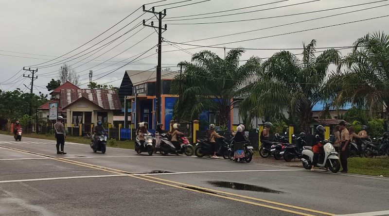 Sat Lantas Polres Aceh Jaya Laksanakan Strong Point Pagi Dan Edukasi Keselamatan Berlalu Lintas