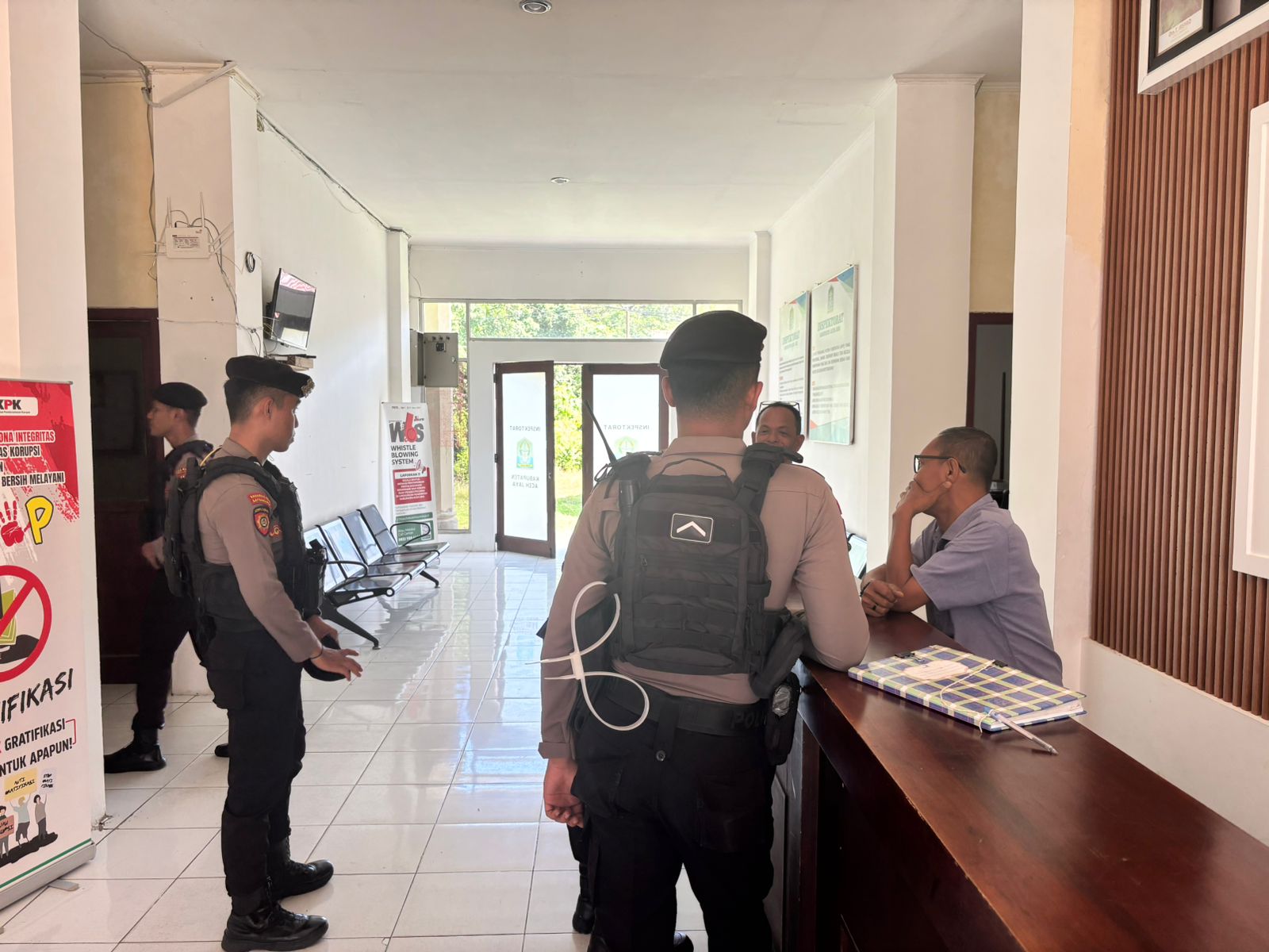 Setelah melakukan patroli di Kantor PUPR, pada pukul 14.00 WIB, tim melanjutkan patroli ke Kantor Inspektorat Aceh Jaya dengan tujuan yang sama, yakni mengingatkan petugas agar tetap waspada dalam mencegah tindakan kejahatan yang dapat mengganggu stabilitas keamanan di lingkungan kantor pemerintahan.