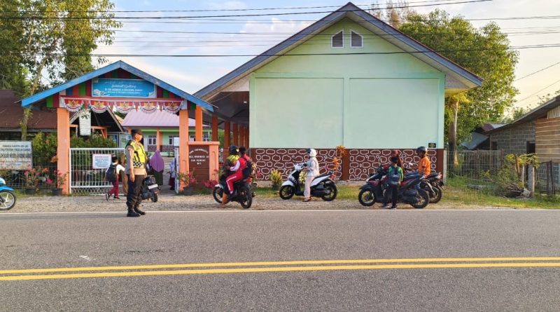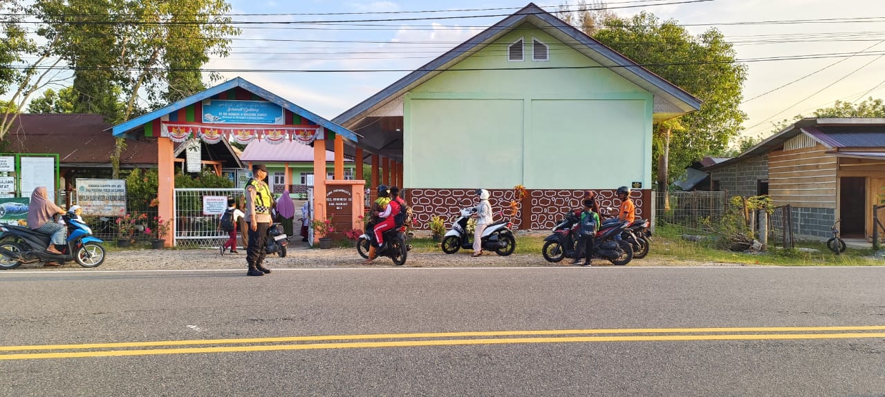 Personel Polsek Krueng Sabee Laksanakan Strong Point di Tempat Rawan Kecelakaan, Bantu Sebrangkan Anak Sekolah Sebagai Wujud Keselamatan