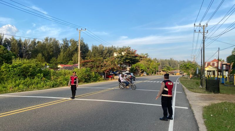 Satsamapta Polres Aceh Jaya Laksanakan Strong Point Pagi, Lancarkan Aktivitas Masyarakat dan Siswa Sekolah
