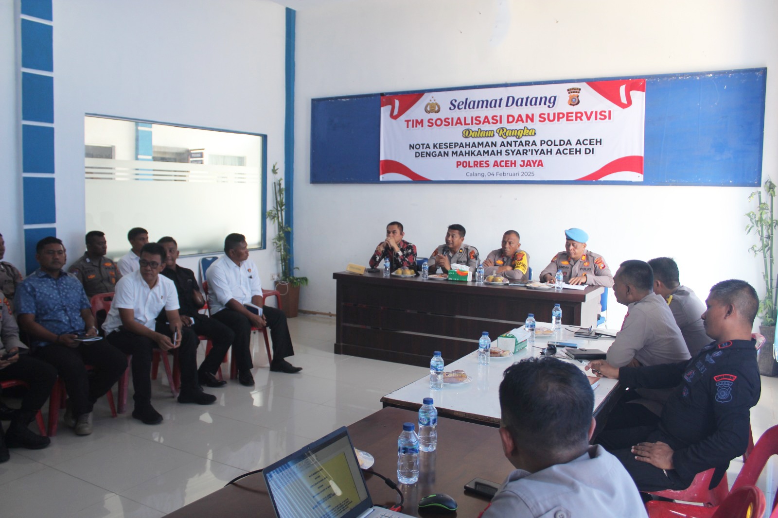 Polres Aceh Jaya dan Mahkamah Syar’iyah Calang Terima Kunjungan Tim Sosialisasi dan Supervisi Nota Kesepahaman Polda Aceh bersama Mahkamah Syar’iyah Aceh