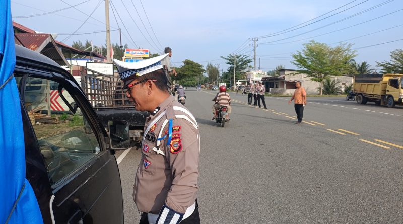 Calang — Satlantas Polres Aceh Jaya melaksanakan razia rutin dalam rangka Operasi Keselamatan Seulawah di wilayah hukum Polres Aceh Jaya. Razia ini difokuskan pada Jalan Lintas Banda Aceh – Meulaboh, tepatnya di Desa Kuala Meurisi, Kecamatan Krueng Sabee, Kabupaten Aceh Jaya, untuk mengantisipasi pelanggaran lalu lintas yang berpotensi menyebabkan kecelakaan lalu lintas (laka lantas). Selasa 11 Februari 2025.