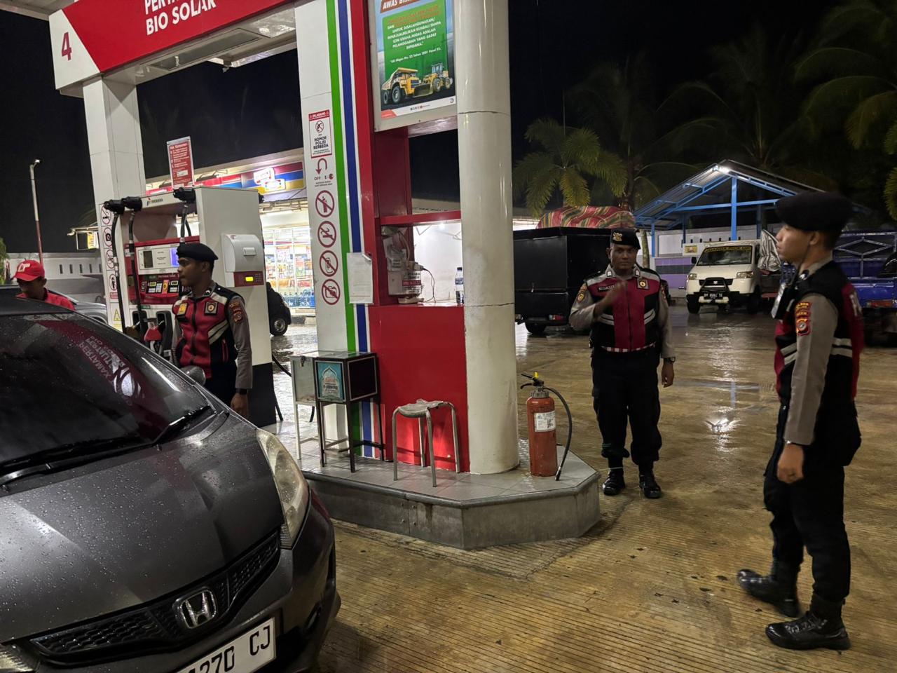 Patroli Harkamtibmas Tim Perintis Presisi Polres Aceh Jaya Ciptakan Situasi Kondusif di SPBU Calang dan Bank BPD Krueng Sabee