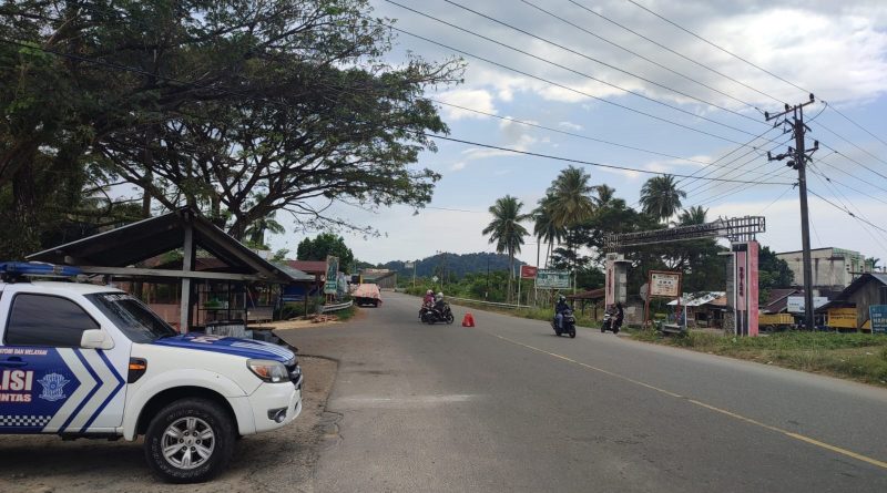 Personel Polres Aceh Jaya Lakukan Pengaturan Lalu Lintas di Persimpangan Rumah Duka Alm. Aba H. Asnawi Bin Tgk Ramli (Aba Budi Lamno) di Dayah Budi Lamno.