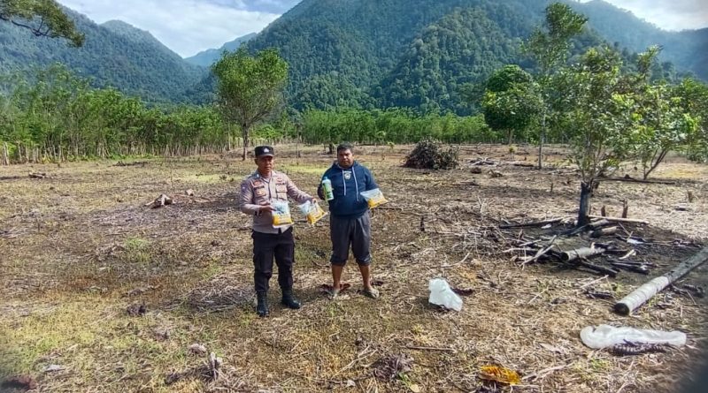 Polsek Jaya Salurkan Bantuan Benih Jagung dan Pupuk Organik Cair dalam Program Ketahanan Pangan/P2L di Desa Pante Cermin