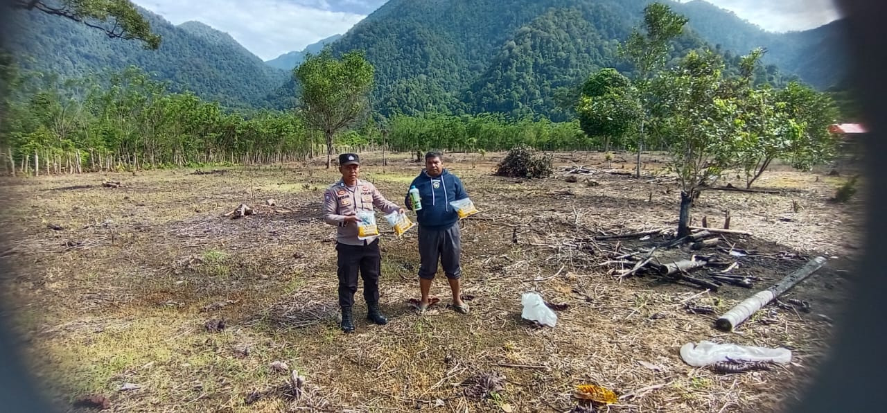 Polsek Jaya Salurkan Bantuan Benih Jagung dan Pupuk Organik Cair dalam Program Ketahanan Pangan/P2L di Desa Pante Cermin