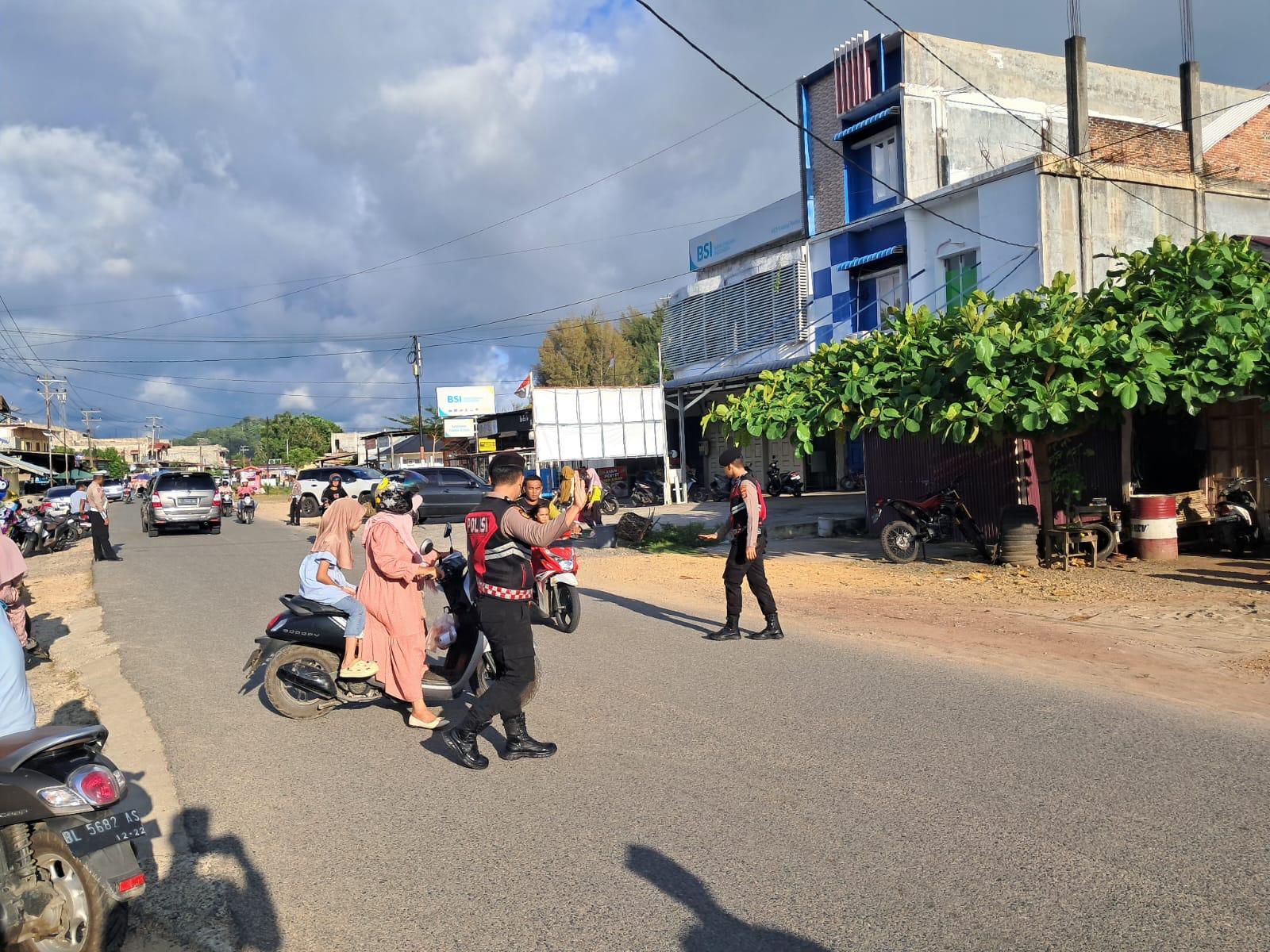 Satsamapta Polres Aceh Jaya Lakukan Pengaturan Lalu Lintas di Titik Ramai Jelang Berbuka Puasa