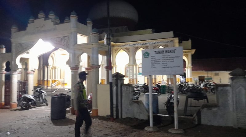 Ciptakan Rasa Aman, Personel Polsek Krueng Sabee laksanakan Pengamanan Shalat Tarawih Demi kenyamanan Jamaah