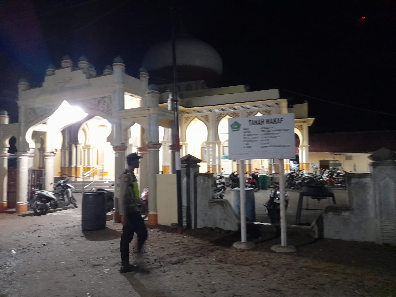 Ciptakan Rasa Aman, Personel Polsek Krueng Sabee laksanakan Pengamanan Shalat Tarawih Demi kenyamanan Jamaah