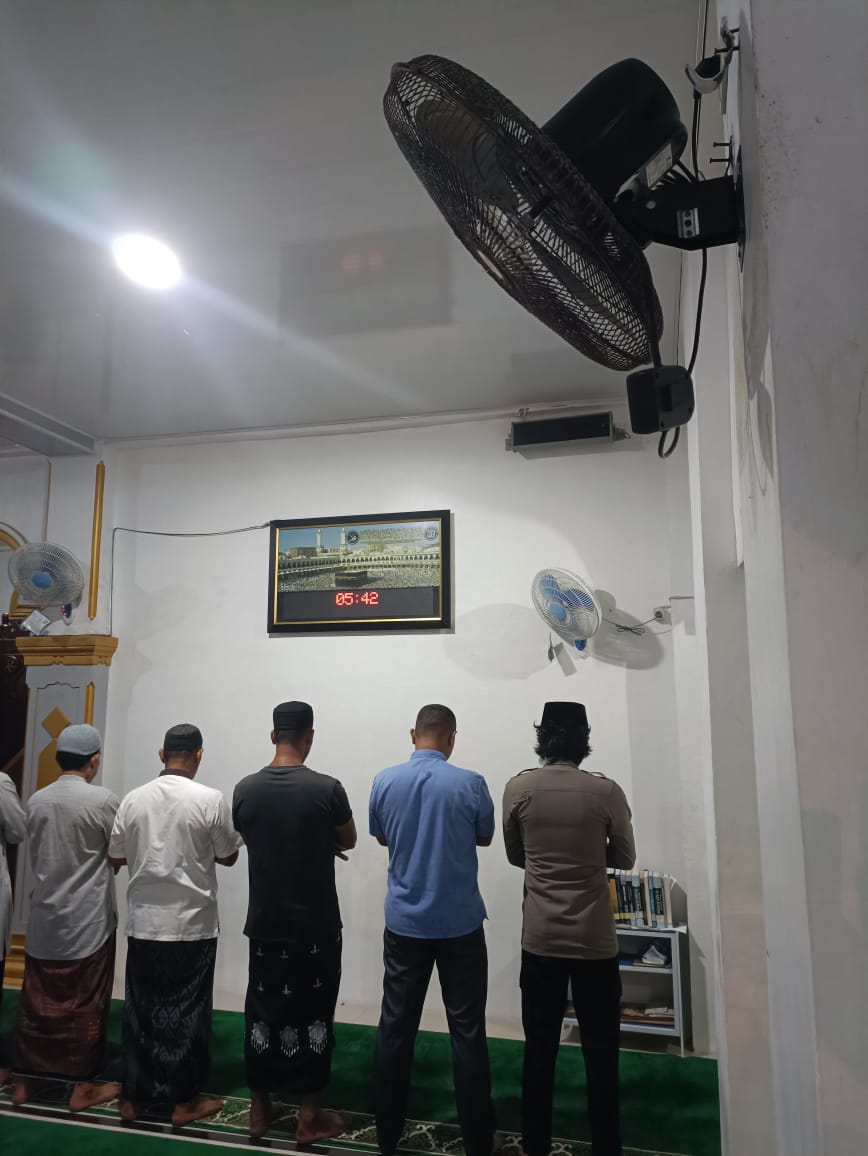 Calang – Personel Polsek Krueng Sabee, Polres Aceh Jaya, melaksanakan kegiatan Shalat Tarawih Keliling (Tarling) berjamaah di Masjid Al Muhajirin, Dusun Kuala Merisi, Desa Keutapang, Kecamatan Krueng Sabee, Kabupaten Aceh Jaya, sebagai bagian dari upaya memantau situasi Kamtibmas di tengah-tengah masyarakat, Senin (24/03/2024).