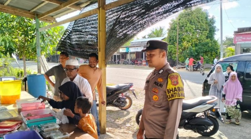 Calang – Untuk memastikan keamanan dan kenyamanan masyarakat selama bulan suci Ramadan, Bhabinkamtibmas Polsek Sampoiniet mengintensifkan patroli pengamanan di pasar takjil yang tersebar di Kecamatan Sampoiniet, Kabupaten Aceh Jaya. Kegiatan ini bertujuan untuk mencegah gangguan kamtibmas serta memberikan rasa aman bagi masyarakat yang berbelanja takjil menjelang berbuka puasa. Senin 24 Maret 2025.