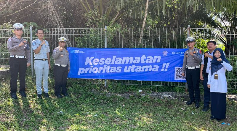 Satlantas Polres Aceh Jaya bersama Jasa Raharja Gaungkan Keselamatan Berlalu Lintas Melalui Pemasangan Spanduk Ops Ketupat Seulawah 2025