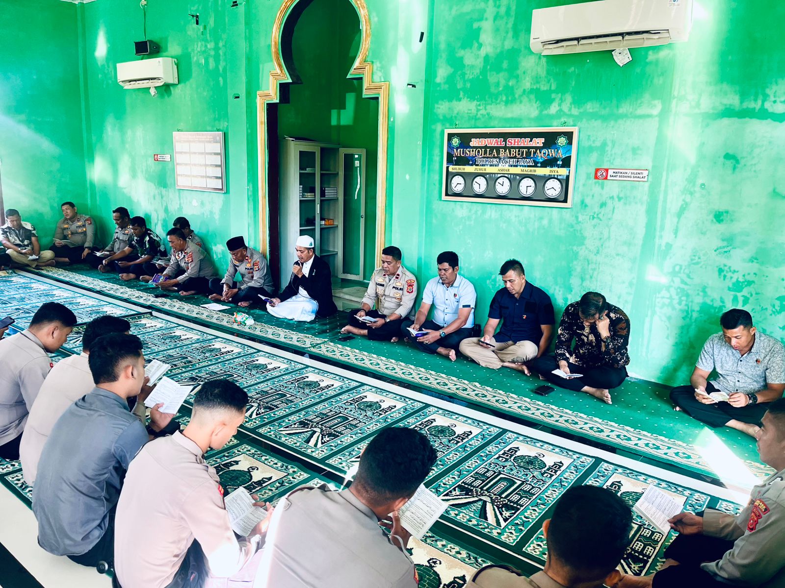 Kegiatan yang rutin digelar ini berlangsung di Mushalla Babut Taqwa Mapolres Aceh Jaya dan diisi dengan pembacaan ayat suci Al-Qur’an, ceramah agama, serta tausiah yang memberikan motivasi dan pencerahan rohani kepada anggota. Kegiatan ini bertujuan untuk memperkuat keimanan, ketakwaan, dan membentuk sikap pelayanan yang tulus kepada masyarakat.