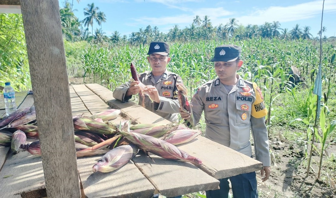 Tinjau Panen Jagung Ungu Manis di Lahan P2B, Polsek Teunom Apresiasi Upaya Warga Bukti Nyata Ketahanan Pangan Desa Teupin Ara