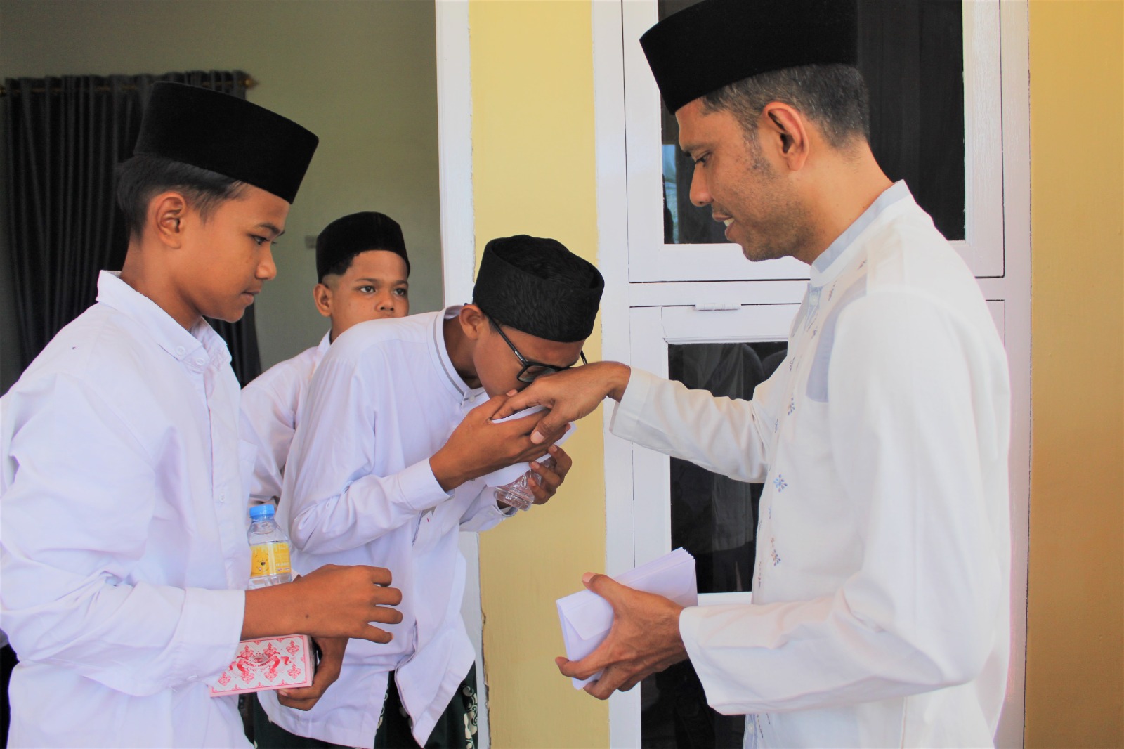 Kegiatan dilanjutkan dengan penyerahan santunan kepada anak-anak yatim oleh Kapolres secara langsung, sebagai bentuk empati dan kepedulian dari jajaran Polres Aceh Jaya terhadap sesama. Para anak yatim tampak bahagia dan tersenyum menerima bingkisan tersebut.
