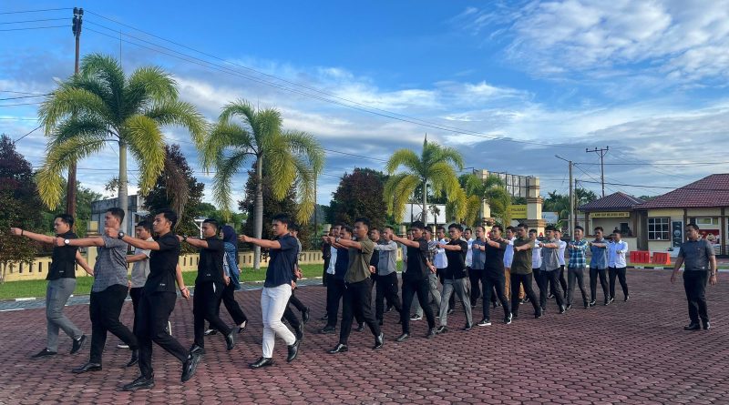 Tingkatkan Kemampuan Baris Berbaris, Personel Polres Aceh Jaya Laksanakan Latihan PBB