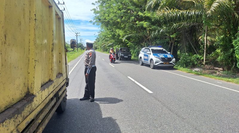 Calang — Satuan Lalu Lintas (Sat Lantas) Polres Aceh Jaya terus berupaya menciptakan keamanan, keselamatan, ketertiban dan kelancaran lalu lintas (Kamtibcarlantas) melalui kegiatan patroli rutin di sejumlah titik rawan pelanggaran dan kecelakaan lalu lintas. Sabtu 10 Mei 2025.