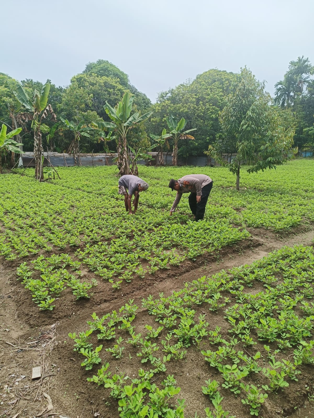Lahan seluas 2.000 meter persegi milik Ahmad Sari ini ditanami dengan berbagai jenis tanaman pangan seperti 300 batang kacang tanah dan 100 batang ubi jalar, yang merupakan komoditas penting dalam menjaga ketahanan dan ketersediaan pangan bergizi di wilayah tersebut.