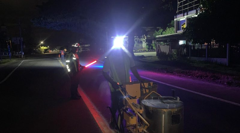 Satlantas Polres Aceh Jaya Kawal Pekerjaan Marka Jalan, Pastikan Arus Lalin Tetap Lancar dan Aman