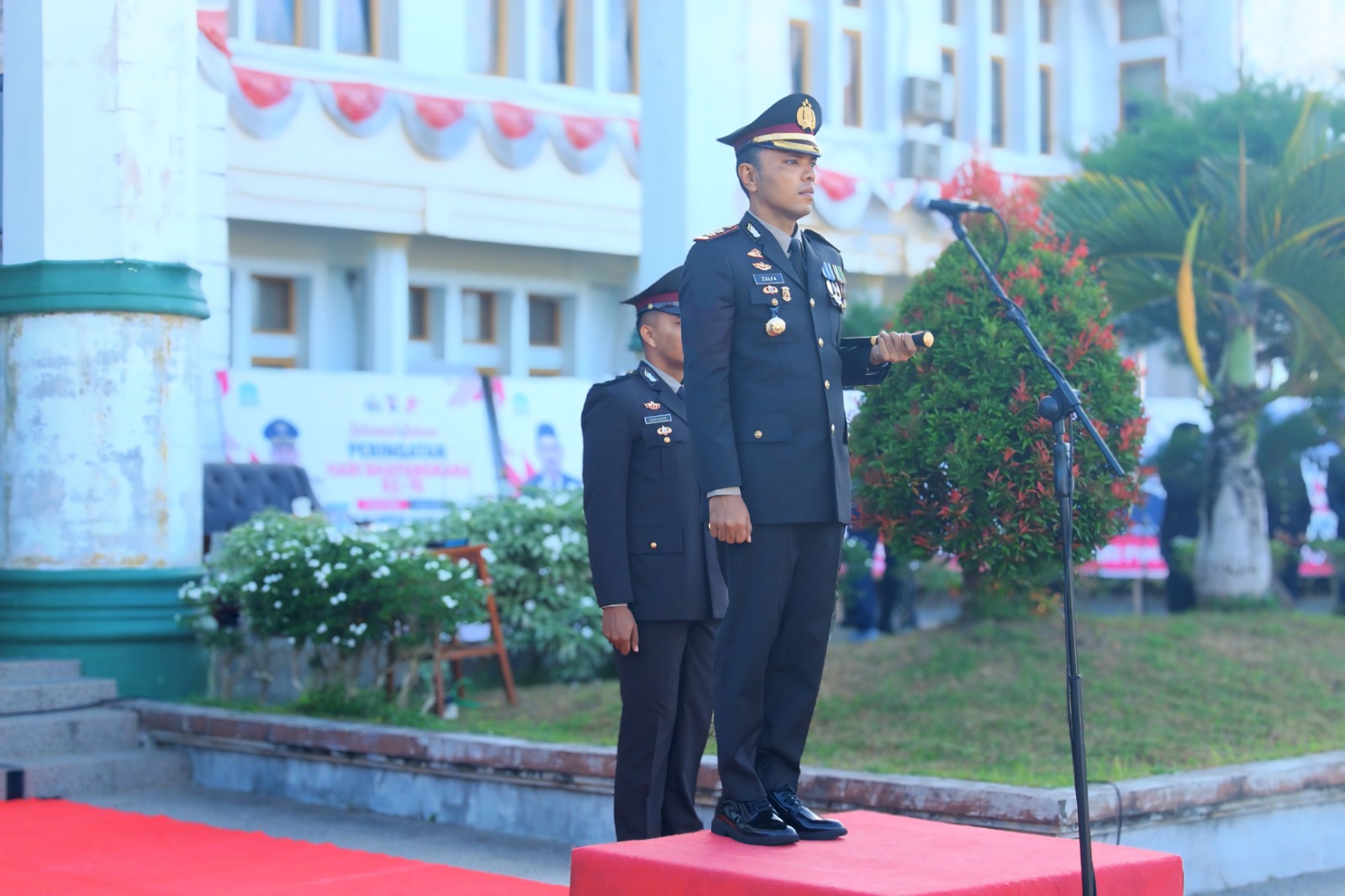 Sebagai Inspektur Upacara, Kapolres Aceh Jaya AKBP Zulfa Renaldo, S.I.K., M.Si. memimpin jalannya rangkaian kegiatan secara langsung, didampingi Perwira Upacara Kompol Nyak Umar, S.E. (Kabag SDM Polres Aceh Jaya) dan Komandan Upacara IPDA Ocsa Reza Wilman, S.H. (KBO Satlantas).