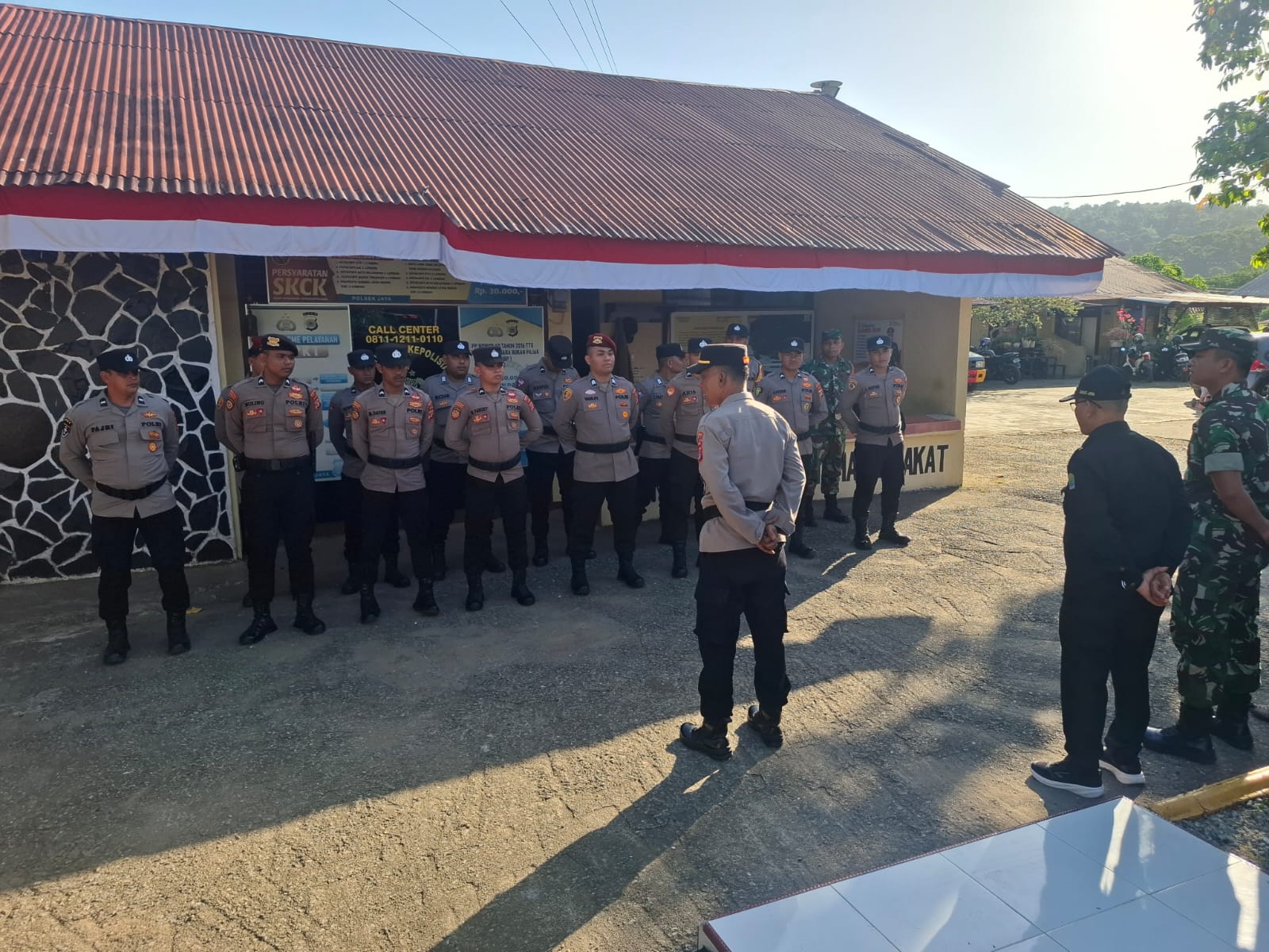 Kapolsek Jaya Pimpin Apel Pengecekan dan Pergeseran Personel Pengamanan Pilchiksung ke Desa-Desa di Kecamatan Jaya