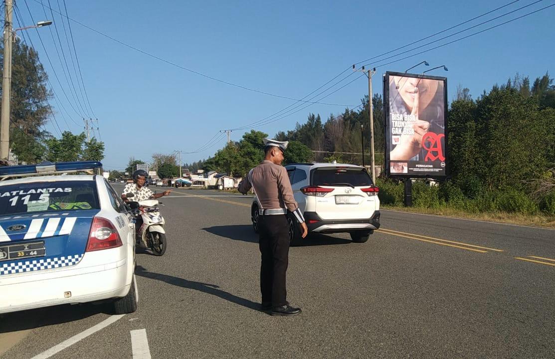 Satlantas Polres Aceh Jaya Gelar Patroli Rutin Antisipasi Pelanggaran Lalu Lintas dan Laka Lantas di Jalur Lintas Nasional