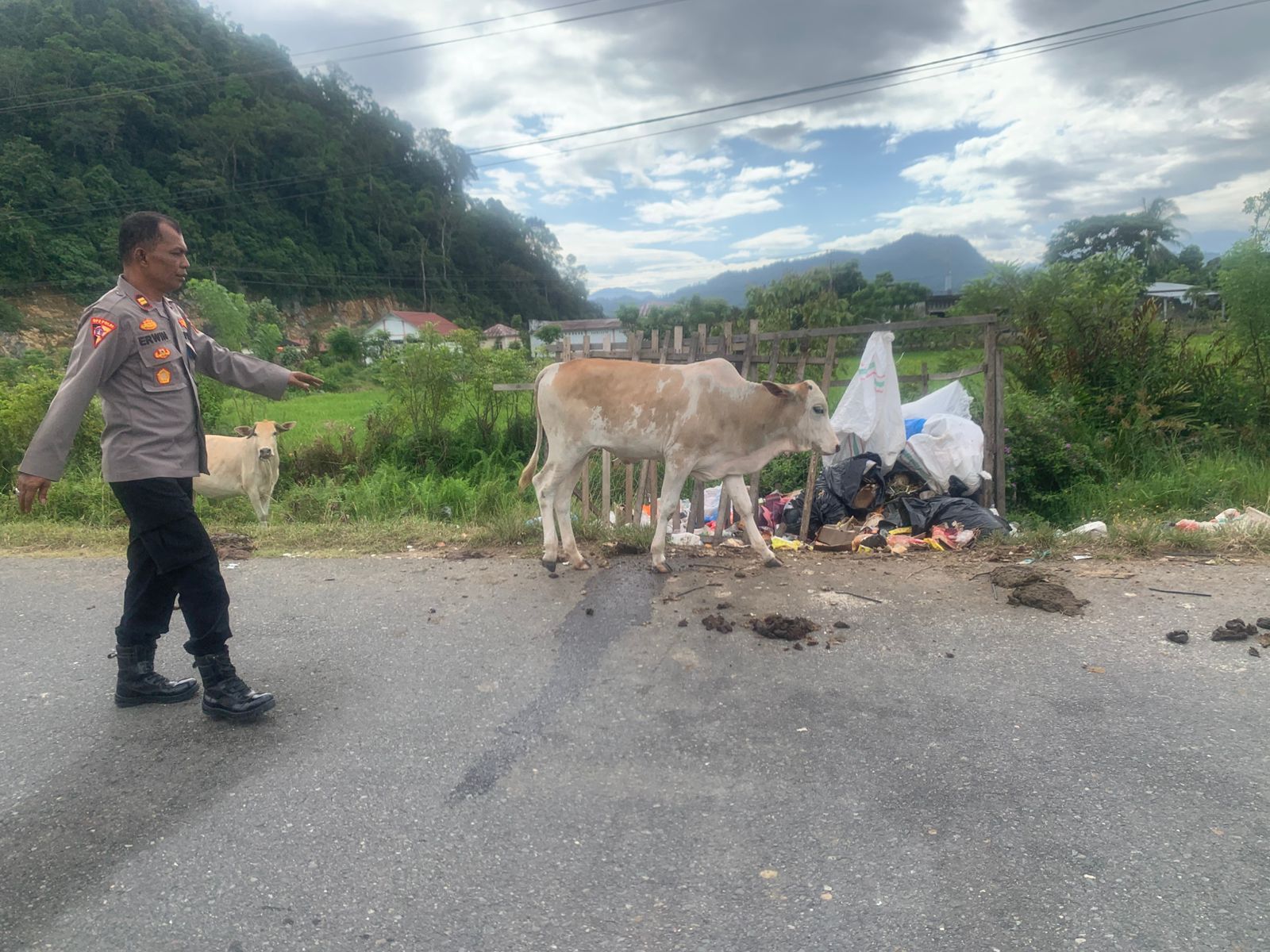 “Kami tidak ingin terjadi kecelakaan lalu lintas hanya karena kelalaian pemilik ternak. Maka dari itu, kami langsung turun ke lokasi untuk mengusir lembu yang berkeliaran di badan jalan, sekaligus memberikan himbauan kepada pemilik agar tidak membiarkan ternaknya lepas begitu saja,” tegas IPTU Erwin.