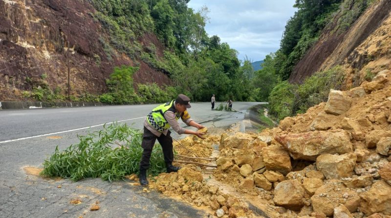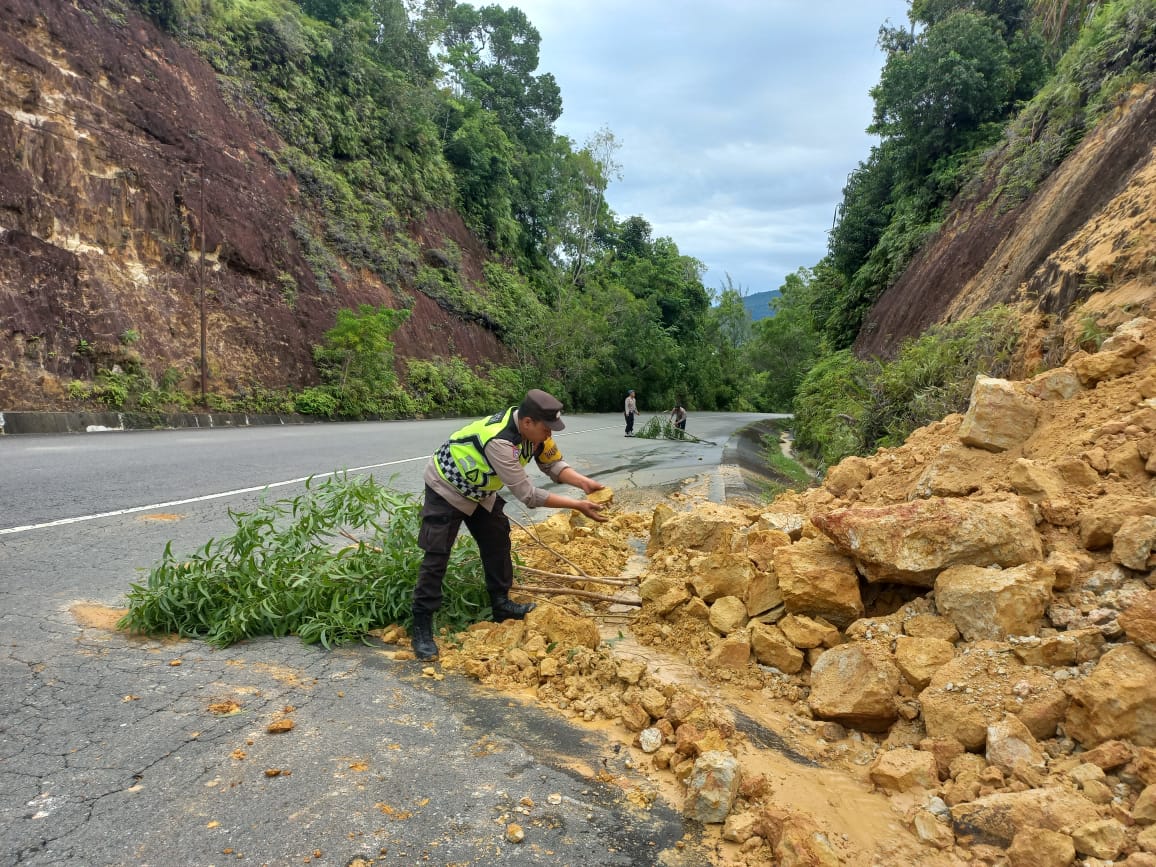 Menindaklanjuti informasi tersebut, personel Polsek Sampoiniet yang dipimpin langsung oleh Kapolsek Sampoiniet, Iptu Heru Setiawan, segera menuju lokasi kejadian. Petugas langsung melakukan pembersihan material longsor yang menutupi badan jalan dan melakukan pengaturan arus lalu lintas guna menjamin keamanan pengguna jalan.