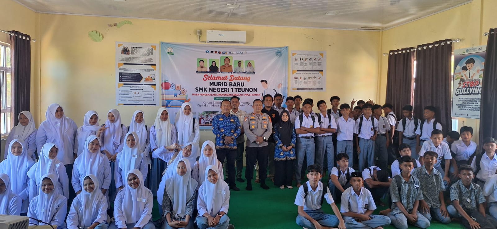 Polsek Teunom Sosialisasikan Bahaya Bullying, Narkoba, dan Tertib Lalu Lintas kepada Siswa Baru dalam Kegiatan MPLS di SMK Negeri 1 Teunom