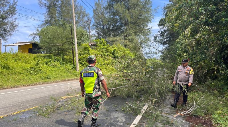 Petugas gabungan yang terdiri dari personel Polsek Setia Bakti, anggota Koramil 03 Setia Bakti, serta masyarakat sekitar dengan sigap membersihkan pohon tumbang menggunakan alat seadanya. Pengaturan arus lalu lintas pun dilakukan untuk memastikan pengguna jalan tetap bisa melintas dengan aman.
