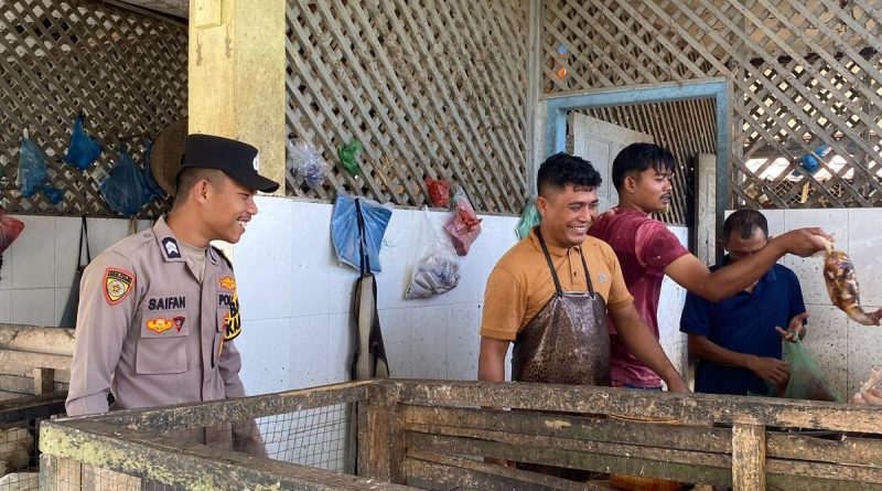 Calang — Sebagai bentuk komitmen dalam mendekatkan diri dengan masyarakat serta menjaga stabilitas keamanan dan ketertiban di wilayah hukumnya, Bhabinkamtibmas Polsek Krueng Sabee, Briptu Saifan Nur, S.H., melaksanakan kegiatan Saweu Masyarakat di Pasar Ikan Gampong Blang, Kecamatan Krueng Sabee, Kabupaten Aceh Jaya. Sabtu 26 Juli 2025.
