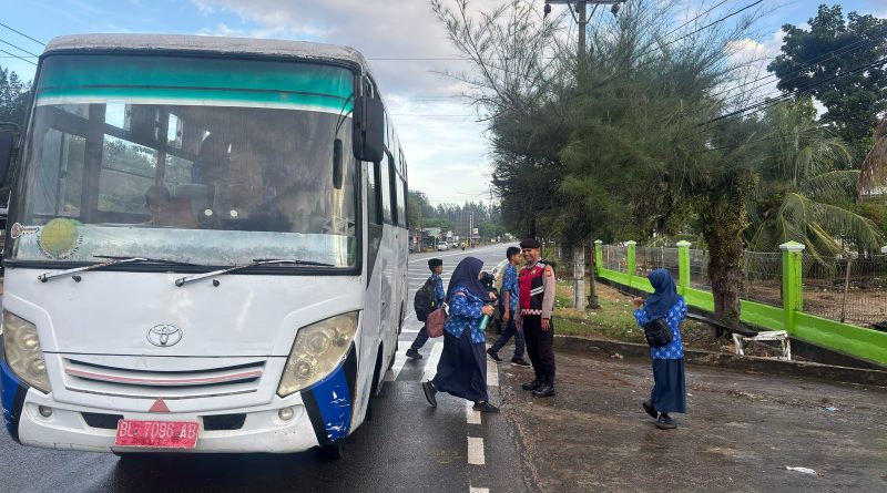 Personel Gabungan Polres Aceh Jaya Laksanakan Strong Point, Pastikan Kelancaran Arus Lalu Lintas Pagi Hari