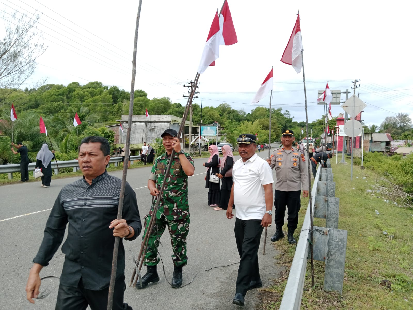 Kapolres Aceh Jaya AKBP Zulfa Renaldo, S.I.K., M.Si. melalui Kapolsek Sampoiniet Iptu Heru Setiawan menyampaikan bahwa kegiatan pemasangan bendera ini merupakan bentuk sinergi antara Muspika dan masyarakat dalam menyemarakkan hari kemerdekaan.