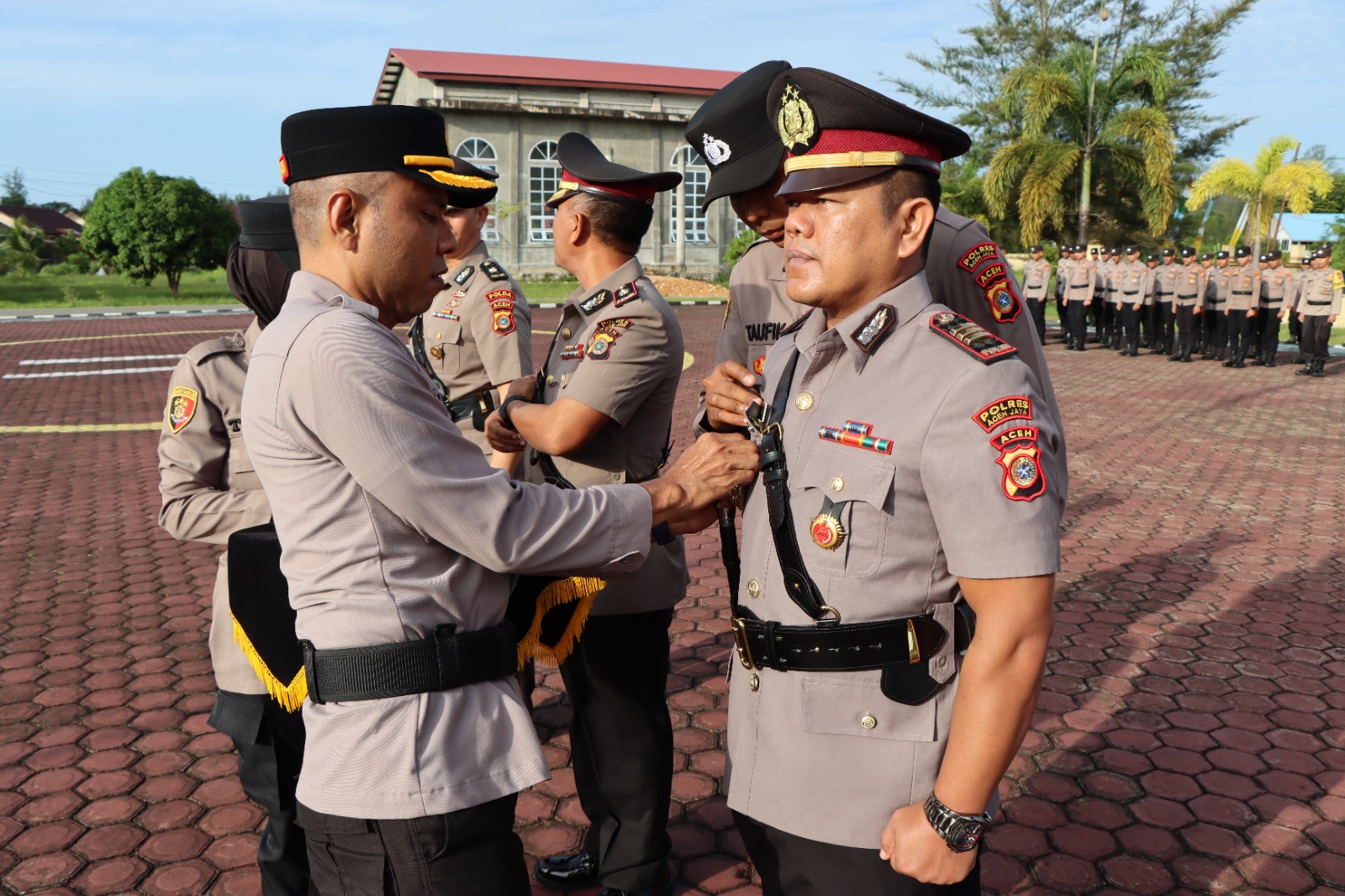 Dalam upacara tersebut, jabatan Kabag Ops diserahterimakan dari Kompol Rafi Darmawan, S.E., M.Si. kepada Kompol Nyak Umar, S.E., sedangkan jabatan Kabag SDM yang sebelumnya diemban Kompol Nyak Umar diserahkan kepada AKP Muchtar Chalis, S.Pd.I.. Selain itu, jabatan Kapolsek Setia Bakti resmi diserahkan dari Iptu Haris, S.H., dan jabatan Kapolsek Panga dari Iptu Safrizal Ariga, S.H. kepada Ipda Novi Asriadi, S.A.B.