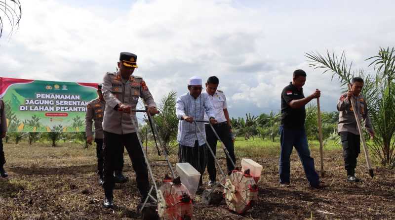 Wujudkan Swasembada Pangan, Kapolres Aceh Jaya Pimpin Penanaman Jagung Serentak di Lahan Pesantren Madinatul Al Fata