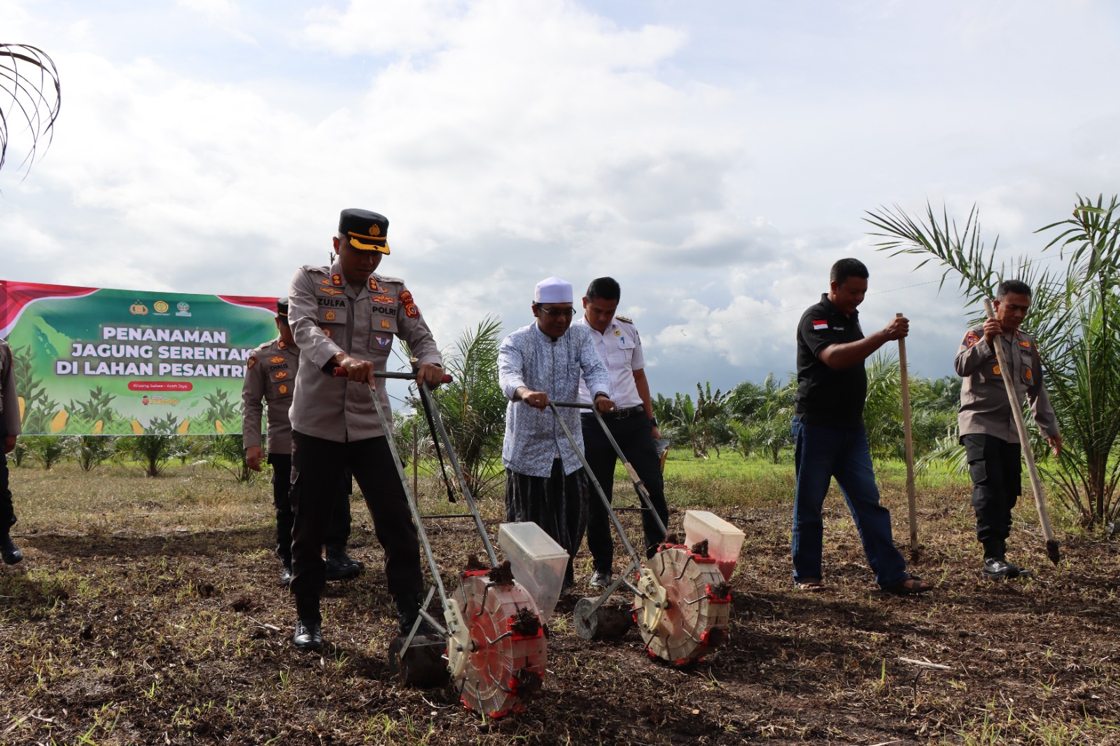 Wujudkan Swasembada Pangan, Kapolres Aceh Jaya Pimpin Penanaman Jagung Serentak di Lahan Pesantren Madinatul Al Fata