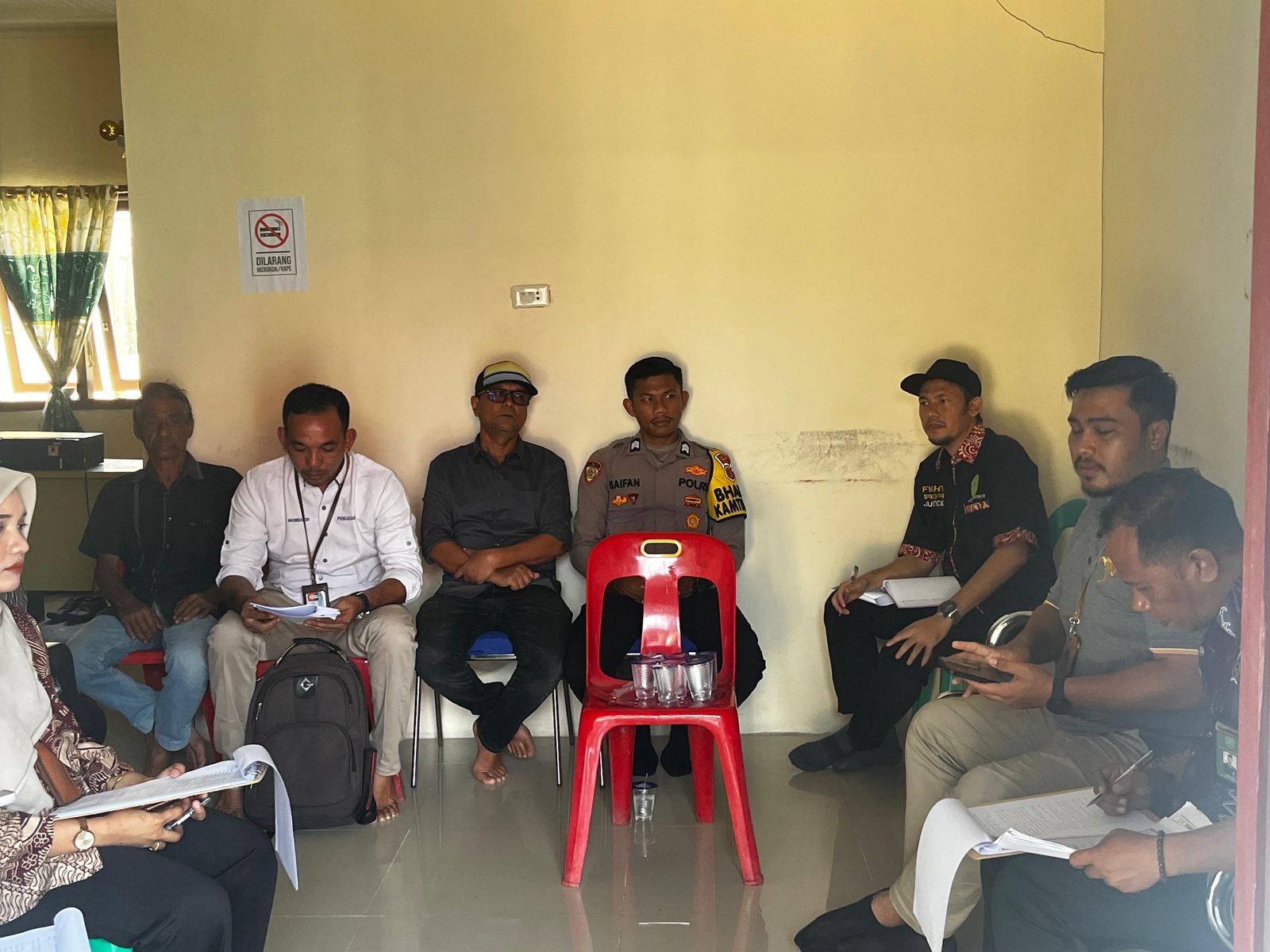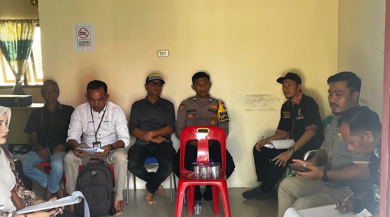 Calang – Dalam rangka mendukung kelancaran proses peradilan sekaligus menjaga keamanan dan ketertiban masyarakat, Bhabinkamtibmas Polsek Krueng Sabee, Briptu Saifan Nur, S.H., menghadiri kegiatan Sidang Pemeriksaan Setempat (Descente) Perkara Gugatan Kewarisan di Desa Gampong Blang, Kecamatan Krueng Sabee, Kabupaten Aceh Jaya, Sabtu (9/8/2025)