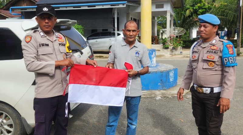 Personel Polsek Krueng Sabee Bagikan Bendera Merah Putih kepada Warga, Sambut HUT ke-80 Republik Indonesia