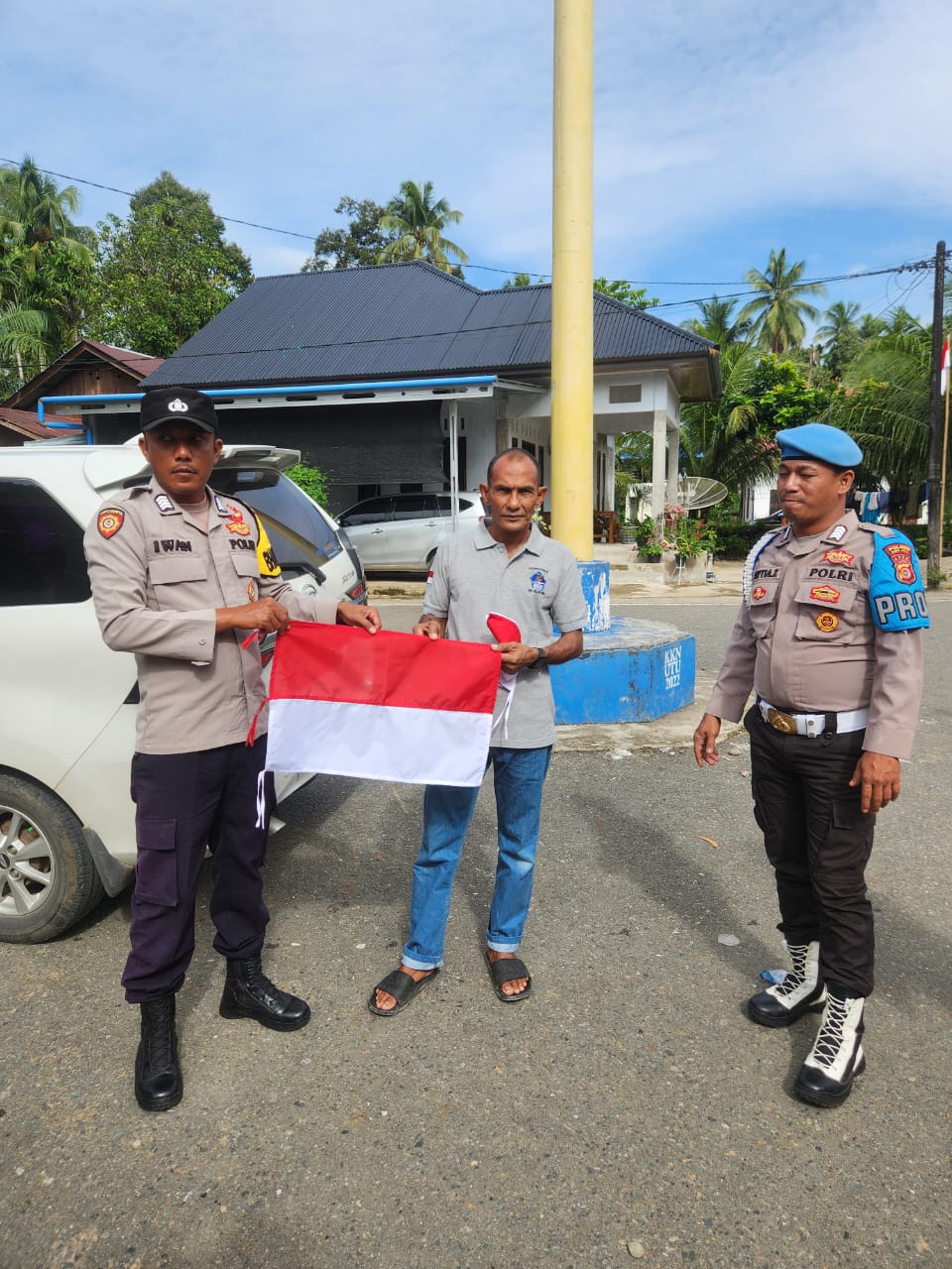 Personel Polsek Krueng Sabee Bagikan Bendera Merah Putih kepada Warga, Sambut HUT ke-80 Republik Indonesia