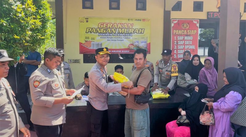 Calang – Dalam upaya menjaga stabilitas pasokan dan harga pangan di wilayah hukumnya, Polres Aceh Jaya melalui Polsek Krueng Sabee bekerja sama dengan Bulog Kantor Cabang Meulaboh menggelar Gerakan Pangan Murah Tahun 2025. Kegiatan ini dilaksanakan pada Rabu (13/8/2025) pukul 09.00 WIB di Mapolsek Krueng Sabee, Kabupaten Aceh Jaya.