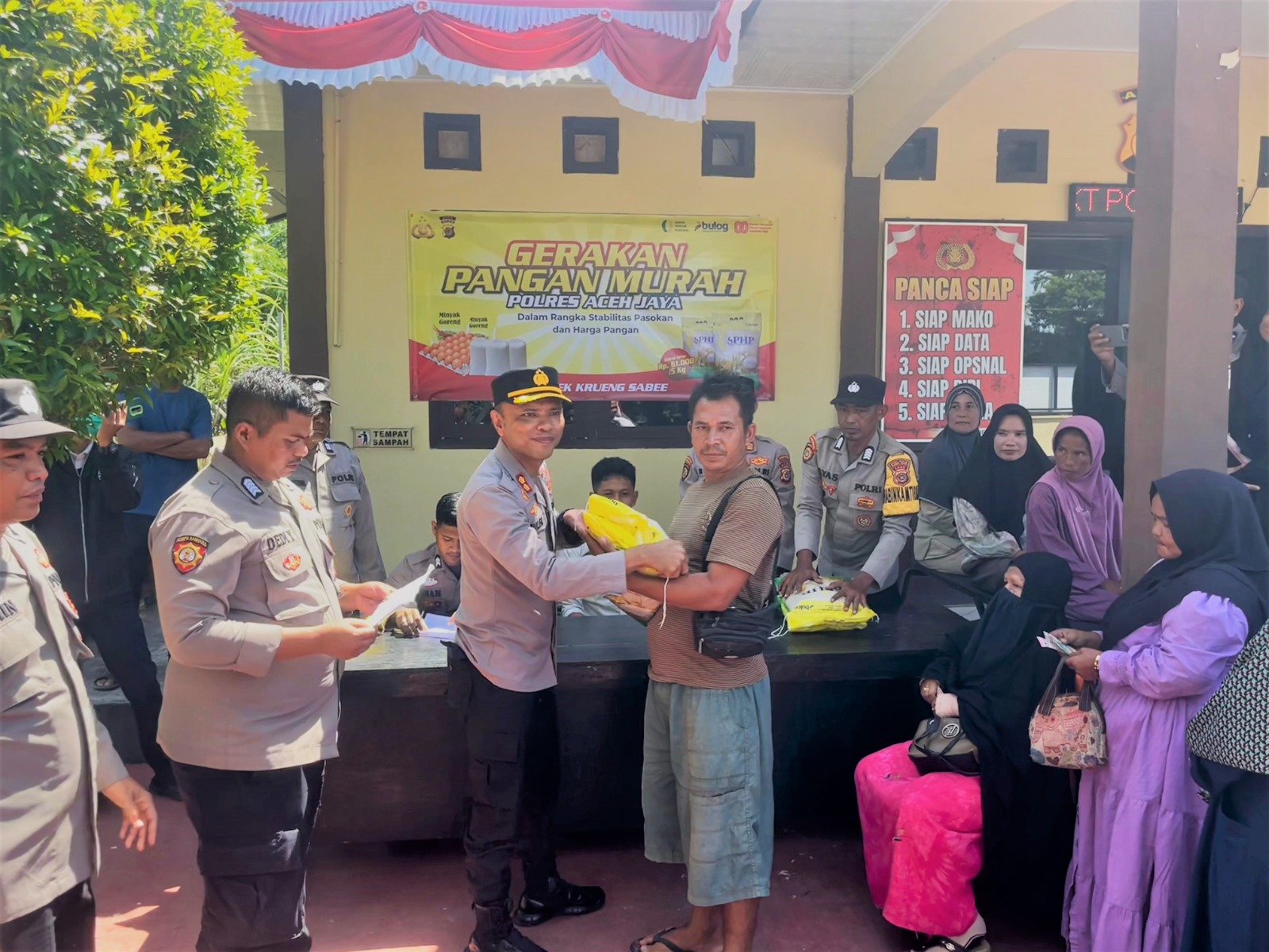 Polres Aceh Jaya Gelar Gerakan Pangan Murah 2025 di Polsek Krueng Sabee, 2 Ton Beras SPHP Habis Terjual
