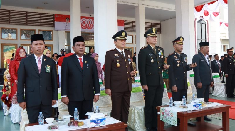 Calang – Kapolres Aceh Jaya AKBP Zulfa Renaldo, S.I.K., M.Si., menghadiri upacara peringatan Hari Ulang Tahun (HUT) ke-80 Kemerdekaan Republik Indonesia tahun 2025 yang digelar di halaman Kantor Bupati Aceh Jaya, Minggu (17/8/2025).