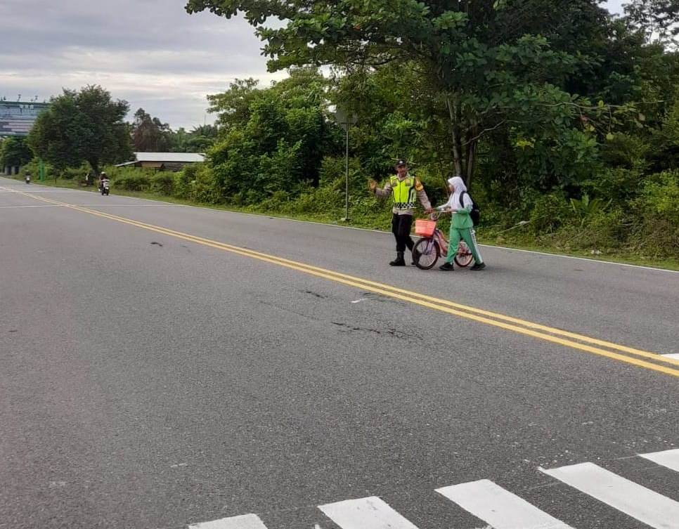 Personel Polsek Krueng Sabee Gelar Strong Point di Titik Rawan Kecelakaan, Beri Rasa Aman Bagi Warga dan Pelajar