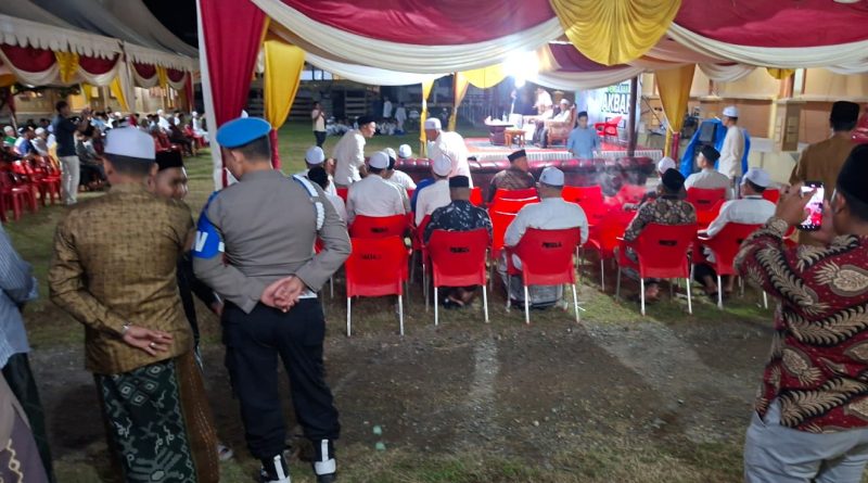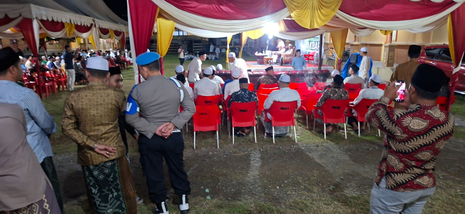 Calang – Personel Polsek Jaya melaksanakan pengamanan kegiatan Pengajian Akbar bersama ulama kharismatik Aceh, Abu Syeikh H. Hasanoel Bashry, HG atau yang akrab disapa Abu Mudi Samalanga, yang berlangsung di Dayah NUHA, Desa Meutara, Kecamatan Jaya, Kabupaten Aceh Jaya, pada Sabtu (23/8/2025) malam.
